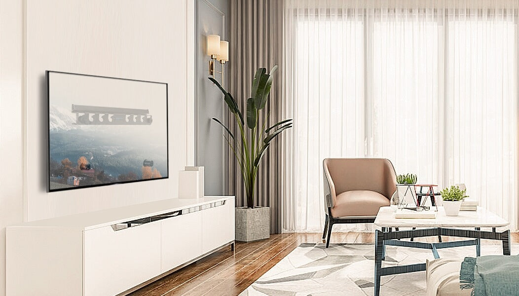 <Low Profile TV Mount>Ultra-slim TV mount holds your TV only 1.06″ from the wall, minimizing gaps and saving space significantly. The small studless TV mount keeps a sleek and tidy appearance after being mounted.